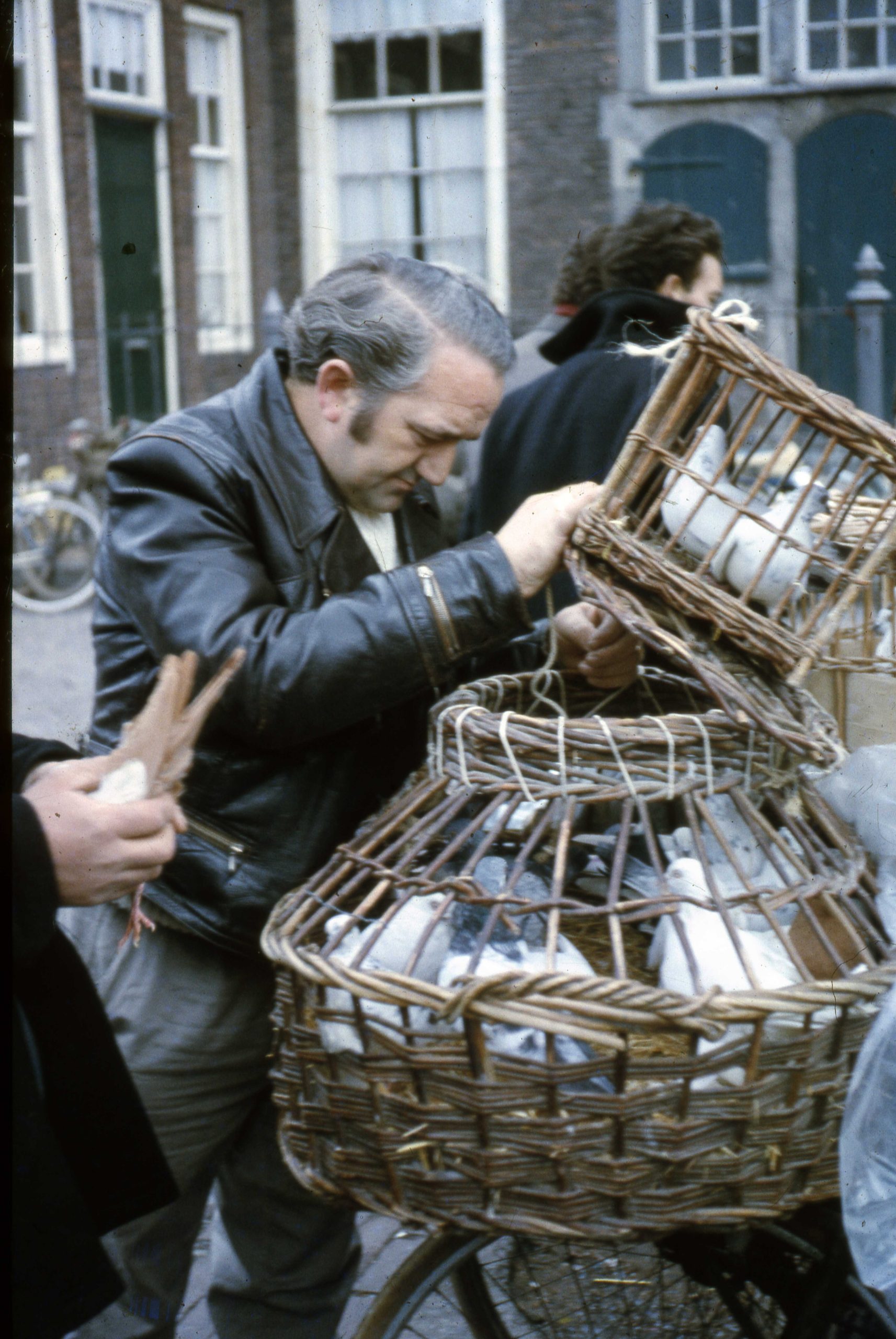 Voor dit artikel sprak ik onder andere met Henk Schultz. Een rasamsterdammer, die met Amsterdamse tongval kleurrijke anekdotes vertelt: ‘Als jochie wilde ik graag duiven houden, maar daarvoor had ik geld nodig. Net voor Kerst leverde slachtduiven een gulden per stuk op. Dan ging ik samen met een vriend ‘s morgens vroeg naar de Dam. We lokten dan de stadsduivenmet wat voer en lieten ons met onze jas wijd open op de duiven vallen. Zo vingen we duiven, dat was een leuke bijverdienste.’ Een andere manier om aan nieuwe duiven te komen was alle hokken schoonmaken van een bevriende duivenhandelaar, als dank kreeg hij dan een paar duiven mee naar huis. Schultz is nu zeventiger, maar hij heeft nog steeds duiven. Niet meer op een duivenplat, maar in een hok in de tuin. Hij is trouw gebleven aan zijn eerste liefde: de Nederlandse hoogvlieger. Tijdens de laatste tentoonstelling van de sierduivenclub in Amsterdam had hij de mooiste sierduif met een zwartwitschild. ‘Het zit in je bloed, ik kan niet zonder duiven.’